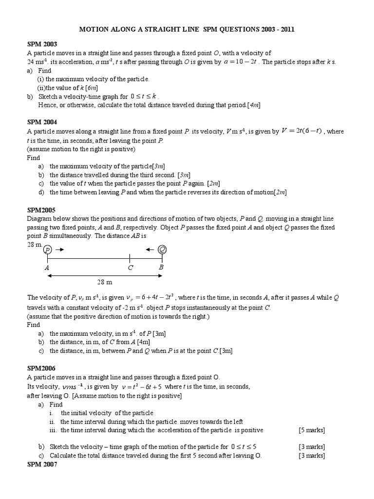 Motion Along A Straight Line Spm 2003 2011 Pdf Velocity Acceleration